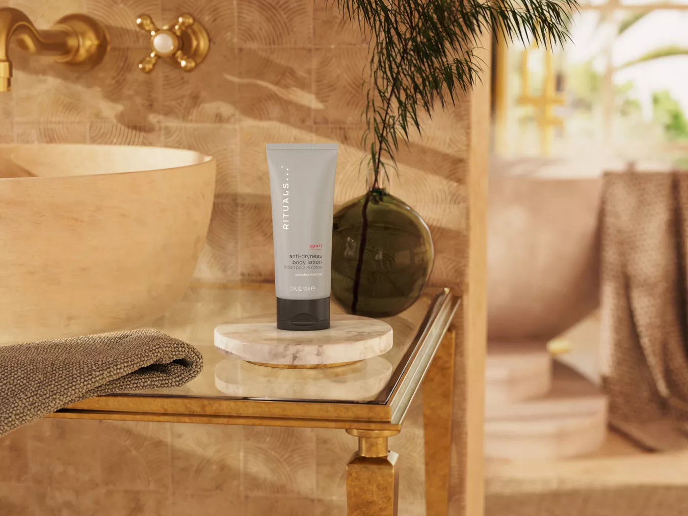 Lotion pour le corps Rituals Sport homme au format voyage 70 ml, hydrate et aide à prévenir la sécheresse cutanée. Texture légère, absorption rapide, idéale après le sport ou en déplacement. Convient à un usage quotidien.